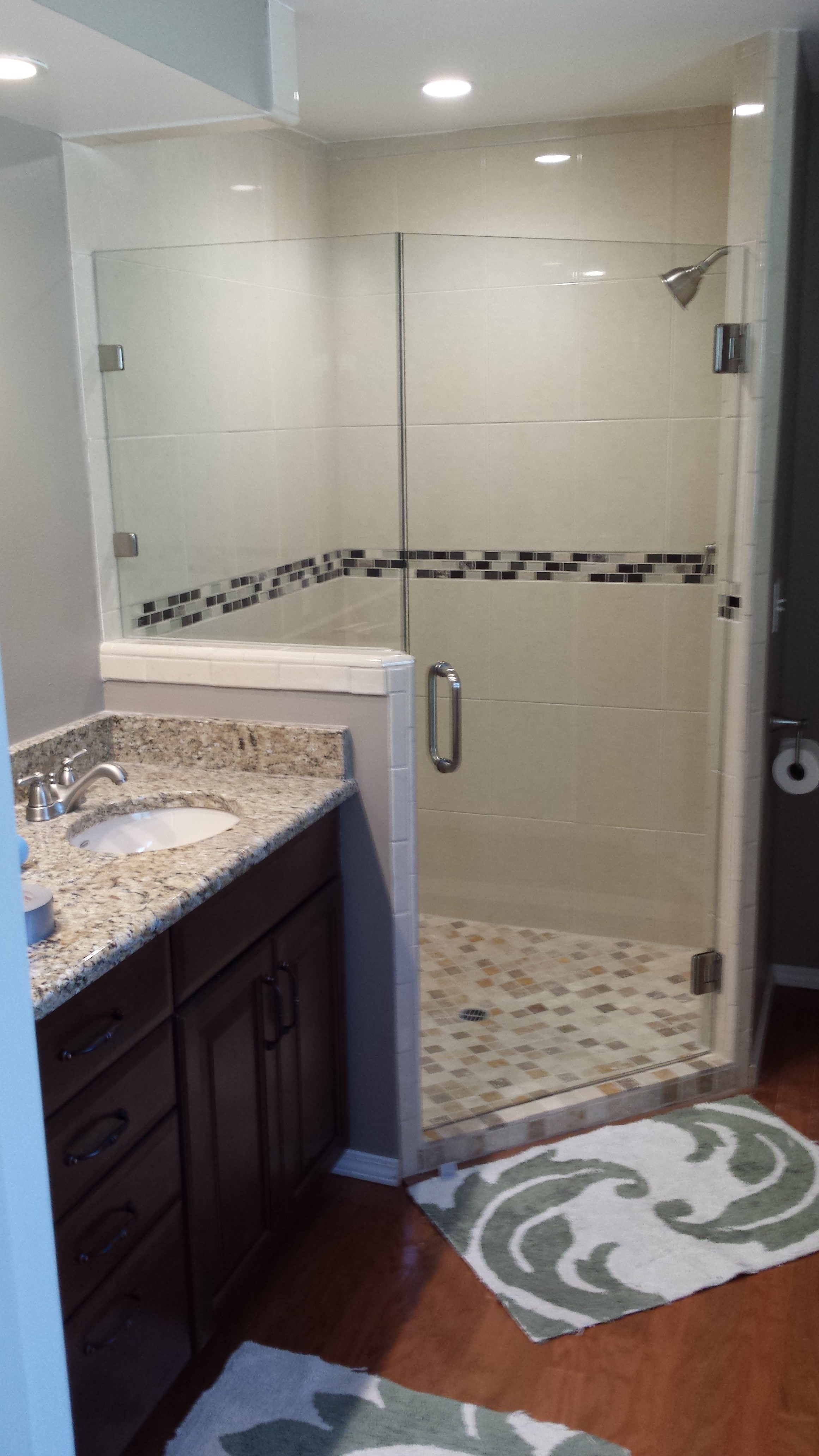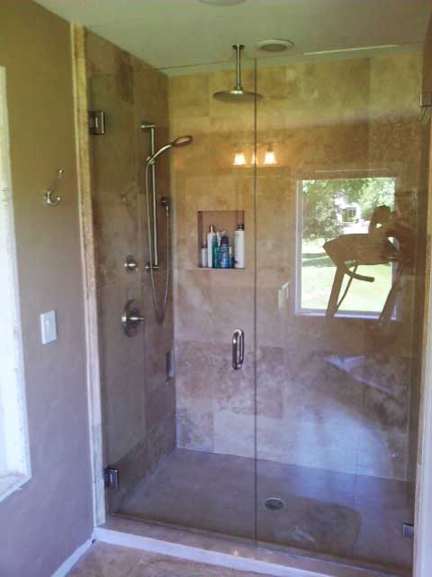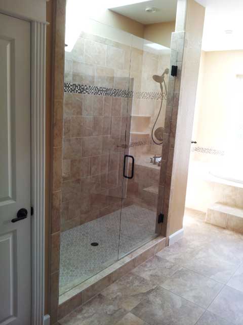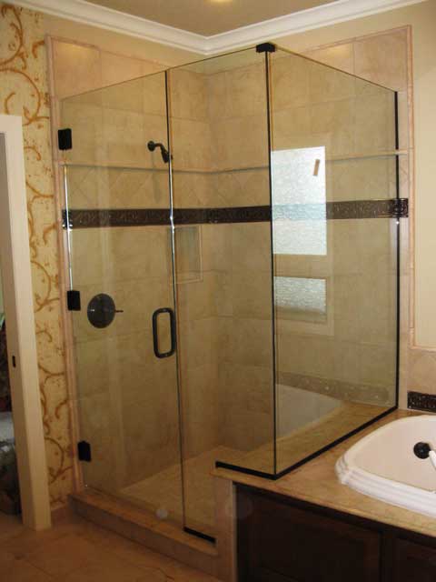 Shower Doors Custom shower doors made exactly to your specifications. You can select all aspects of your shower doors - size, finishes, coatings, style and hardware.Take a look at the beautiful shower doors we've created. heavy glass shower door panels oil rub bronze hardware Hinged glass shower door Frameless Glass Shower Enclosure with Tub multi glass panel shower door